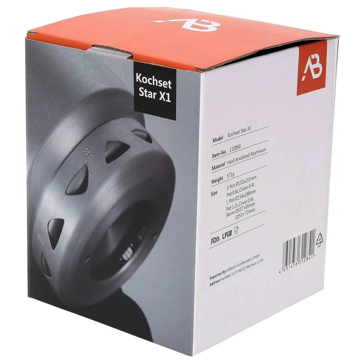 Der Kochset Star X1 besticht durch seine robuste und dennoch leichte Bauart aus hart eloxiertem Aluminium. Es besteht aus 2 Kochgeschirren (klein & mittel) und einem Gaskocher und ist mit einem speziellen Wärmeleitsystem ausgestattet, das die Zubereitungszeit des Essens erheblich verkürzt und den Brennstoffbedarf deutlich verringert. Die klappbaren Griffe mit Silikonbeschichtung schützen vor Verbrennungen. Aufgrund des geringen Gewichtes ist das Set optimal für Wander-, Fahrrad- oder Kanutouren geeignet.
