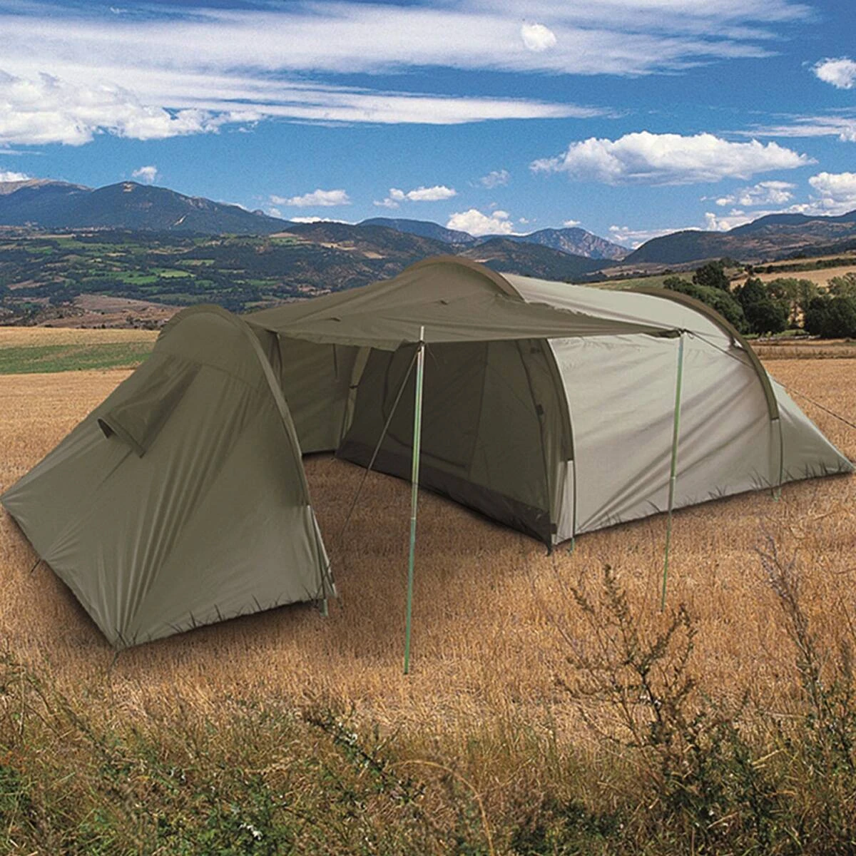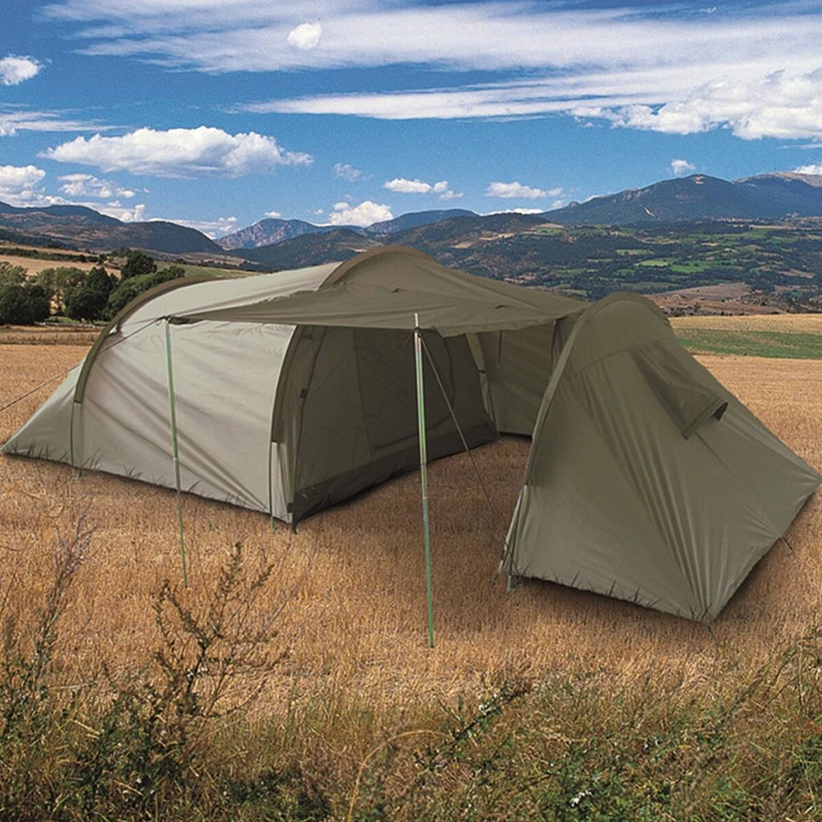 Das 3-Mann-Tunnelzelt ist äußerst geräumig und bietet einen Schlafraum und auf der anderen Seite einen Extra-Stauraum. In diesem und im großen Vorraum ist genügend Platz, um alles Notwendige (z.B. Kochutensilien, Kühlbox und Gepäck) verstauen zu können. Der Eingangsbereich mit Reißverschluss kann als Überdachung und damit als Schutz vor Sonne und Regen verwendet werden. Das Zelt wird natürlich komplett mit Gestänge und Heringen geliefert.