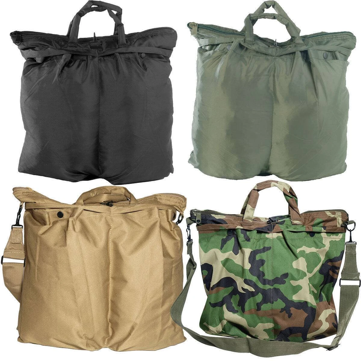Die Pilotenhelmtasche der US Air Force, die auch ideal für Motorradhelme geeignet ist, ist weich gepolstert und schützt den Helm vor Beschädigungen. Sie besitzt 2 Außentaschen mit Druckknopf und Klettverschluss. Im Innenteil befinden sich 2 Einschubtaschen. Des Weiteren hat sie abnehmbare Trageriemen und einen kurzen Tragegriff.